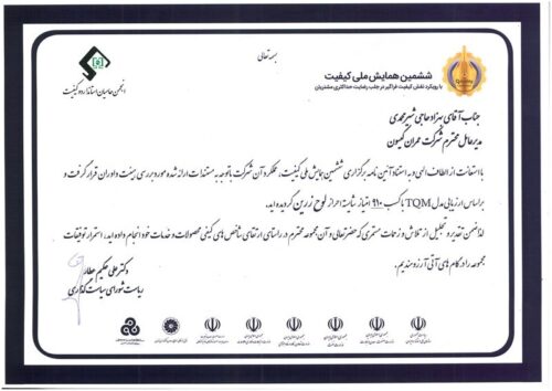 گواهی نامه ها و جوایز گواهینامههای اخذشده توسط شرکت عمران کیسون لوح و تقدیرنامه اخذشده ششمین همایش ملی کیفیت
